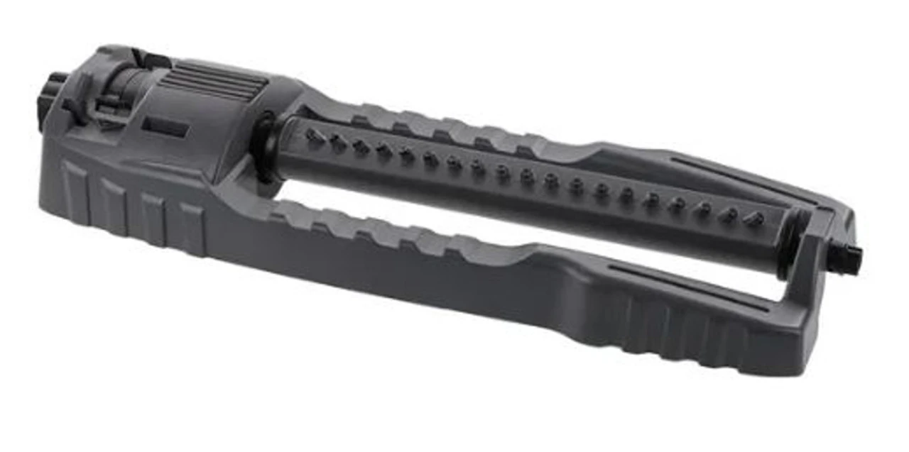 This Gear Driven Oscillator is ideal for watering large, rectangular areas. Easy to slide pattern tabs adjust the spray distance from full to a partial coverage. Create a custom pattern by turning the dial to conform to an array of yard widths and lengths. Equipped with the quiet, state-of-the-art gear driven motor and precise flow nozzles which distributed water evenly over the entire area every time. The innovative wide base design makes repositioning easy and reduces tipping. State-of-the-art gear driven motor Innovative wide base design 19 precise flow nozzles Swivel connection for simple hose attachment 30% more flow than average oscillators Clean-out plug for easy maintenance Swivel connection for simple hose attachment 30% more flow than average oscillators